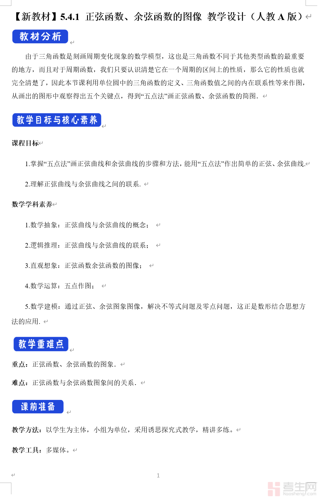 统编人教A版高中必修第一册《5.4 三角函数的图象与性质》名师精品教案教学设计.docx